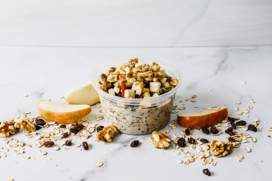 Introducing Doctor's Orders, the delightful overnight oats flavor that's "prescribed" to bring a smile to your mornings! Packed with the goodness of Honeycrisp apples, crunchy walnuts, and sweet raisins, it's the breakfast remedy that's truly "what the doctor ordered" for a healthy and happy start to your day. Get ready to nourish your body and tickle your taste buds with a dose of this best seller!